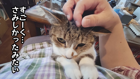 ↑↑翌日のマルコの様子がちょっとおかしかったの。あまりにもさみしかったのかしら…へばりついてばかりでした。可愛いニャ。