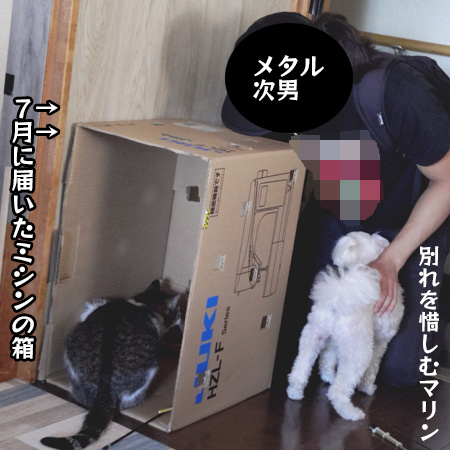 ↑↑先月届いたときのミシンの箱。いまだに捨てられず…