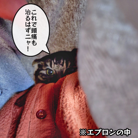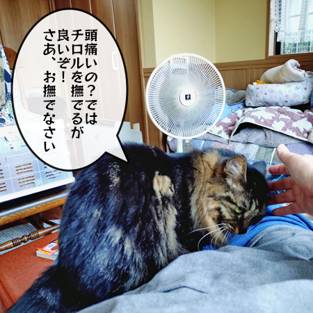↑↑この日はちょいと頭痛の日。横になってると、お腹の上に乗ってきて、ニャーニャーとすり寄ってくれて…