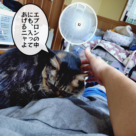 ↑↑そのうち、エプロンをホジホジ…穴が開く!ヤメテー!